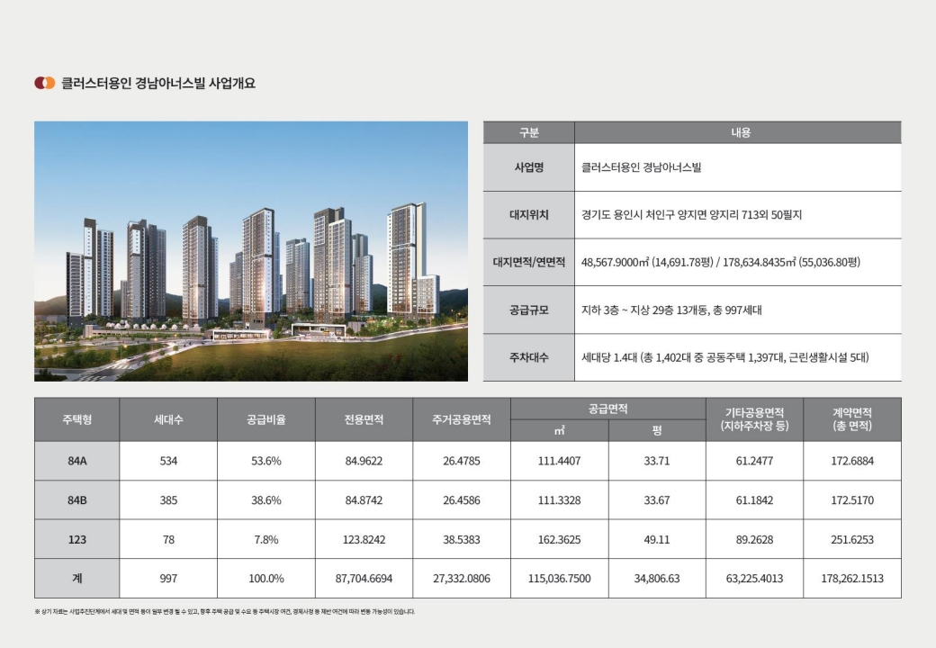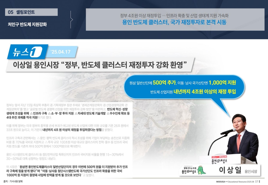 산업 모멘텀: 용인 반도체 클러스터는 단일 기업의 투자를 넘어 소부장 생태계와 지역경제 활성화를 동반합니다. 장기적으로 근무지-주거지의 최적화 흐름이 강화될수록, 가까운 생활권에 위치한 대단지의 수요 탄력성은 커질 수 있습니다.