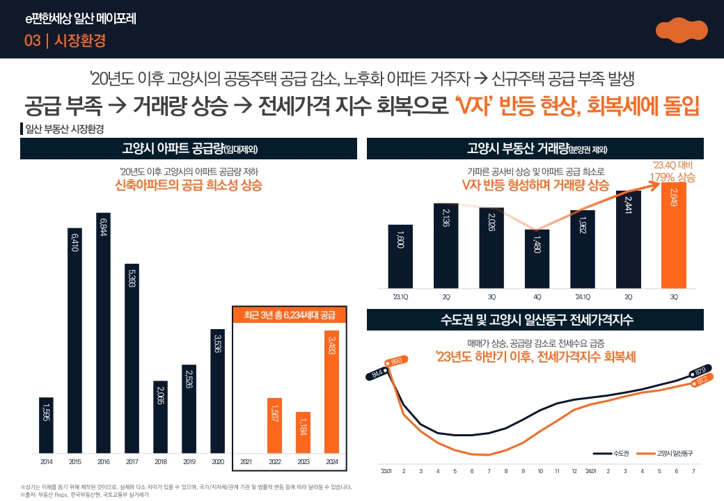 실수요자 관점에서는 교통 접근성과 생활 편의성을 모두 확보한 균형 잡힌 입지이며, 투자 관점에서도 일산 내 노후 아파트 대체 수요와 향후 교통 인프라 확충 효과로 긍정적인 평가를 받고 있습니다.