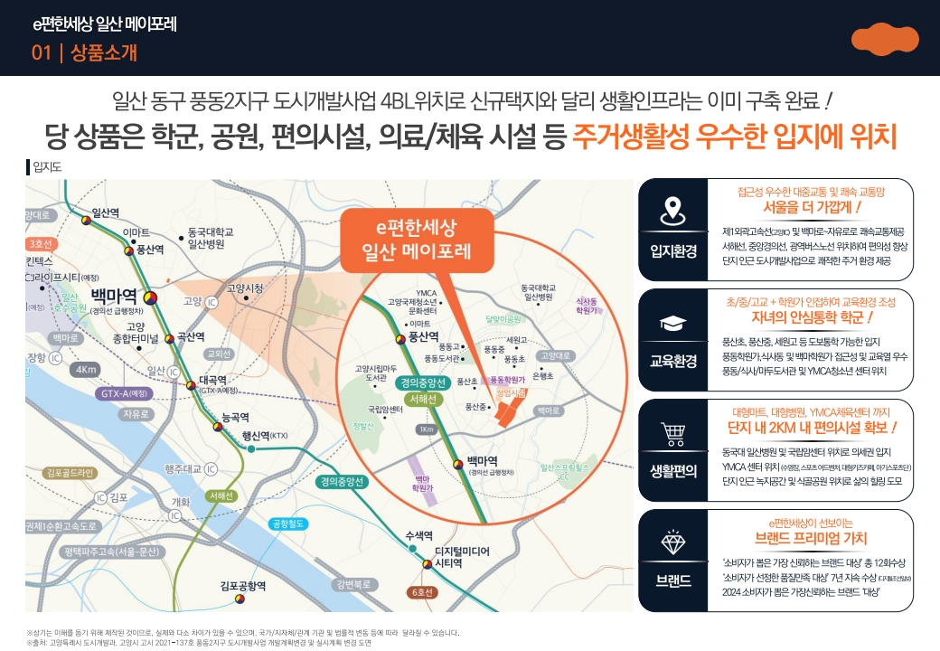 e편한세상 일산 메이포레는 브랜드 대단지, 백마역 역세권, GTX-A 수혜 입지라는 세 가지 조건을 동시에 갖춘 아파트입니다.
