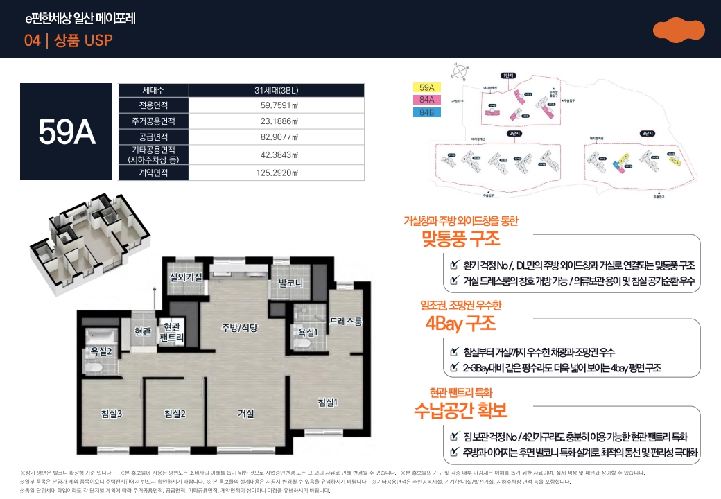 59㎡, 84㎡ 타입은 모두 실거주 중심의 공간 구성으로 설계되었습니다.
