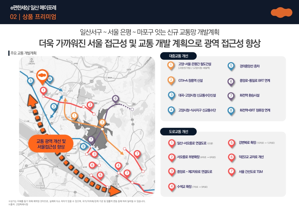 향후 대곡역 환승센터가 완성되면 GTX-A, 3호선, 경의중앙선, 서해선을 모두 연계할 수 있어 일산 지역 내에서도 가장 높은 교통 편의성을 확보할 것으로 기대됩니다.
