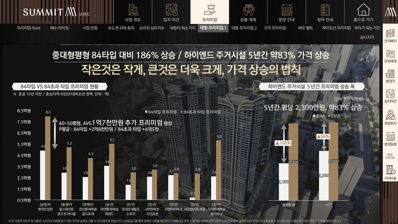 상층 스카이 타입(해당 시): 조망·개방감·프라이버시 강화형으로 상징성 부여.