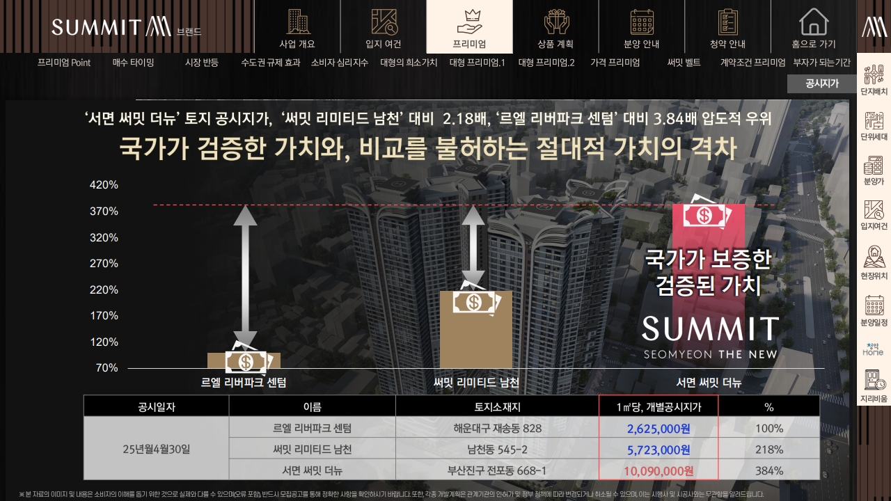 실거주 만족도: 서면 써밋 더뉴는 도심형 라이프스타일을 선호하고 출퇴근 동선이 많은 직장인·전문직·자영업 수요가 핵심 타깃입니다.