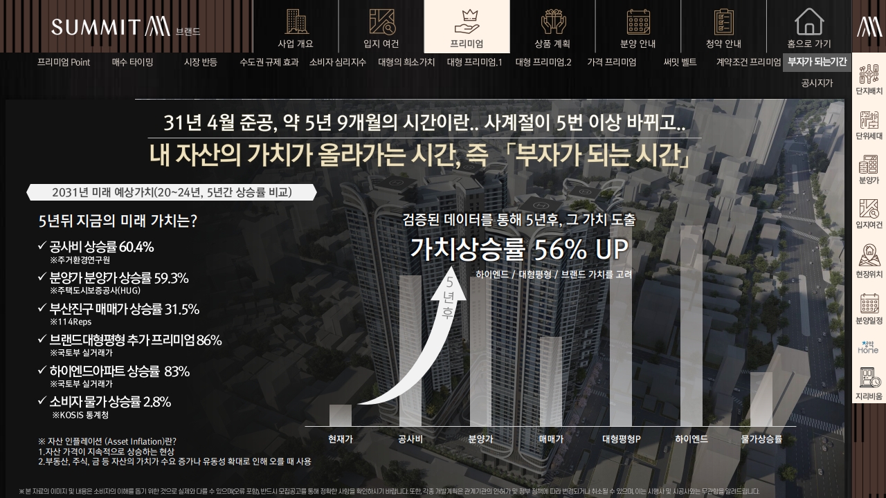 브랜드 아이덴티티: 외관·로비·수공간·조경의 디자인 일체감을 중시하고, 공용부 재료·조명·동선에서 고급화를 체감하도록 기획됩니다. ‘빛’과 ‘수직성’을 강조한 초고층 스카이라인이 핵심 상징입니다.