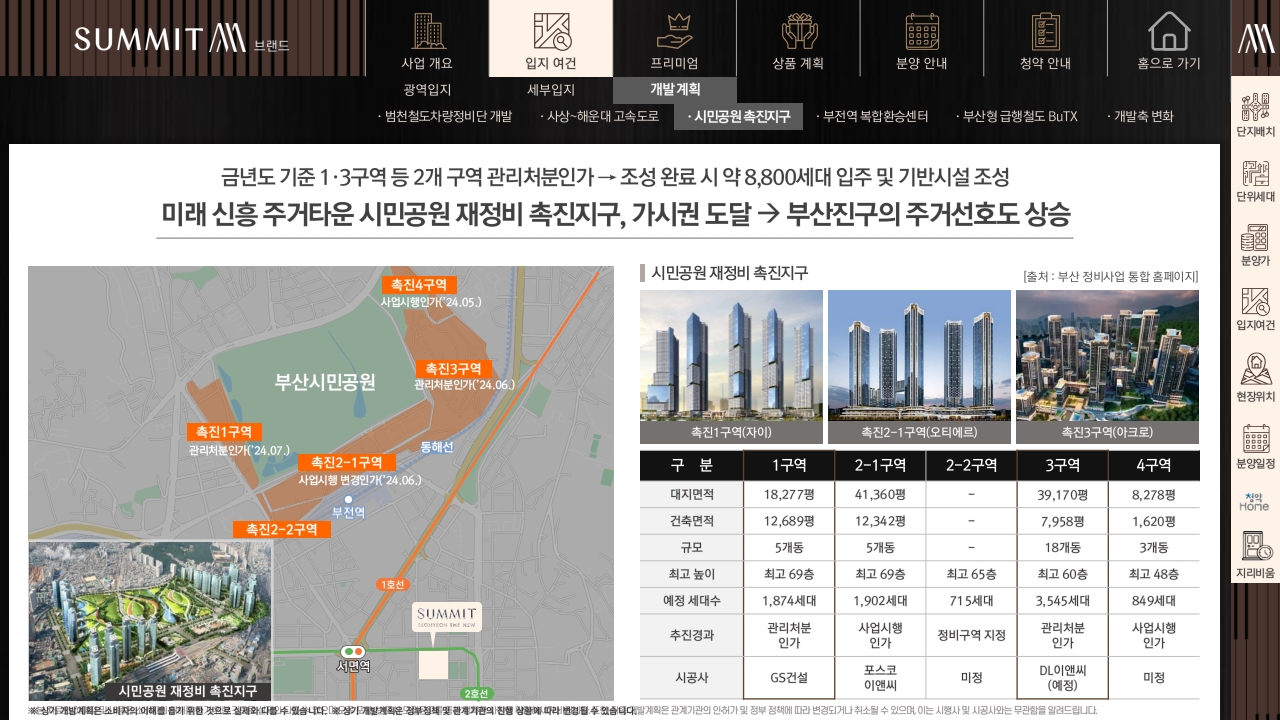 녹지·문화 자원 시너지: 대형 공원 및 도심재생 축과의 연계로 ‘도심 속 여가’ 체감이 가능한 입지입니다. 부산 하이엔드 아파트 수요가 선호하는 산책·러닝·문화 프로그램 이용성이 높습니다.