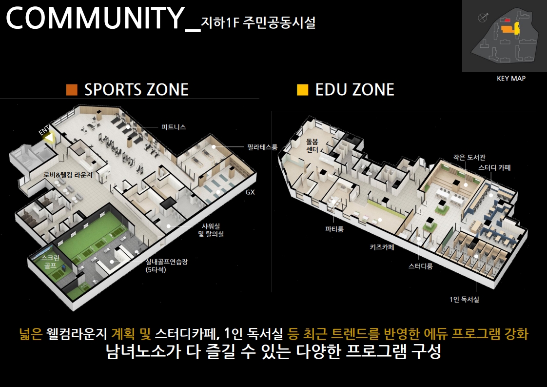 생활성: 공원·학군·의료·쇼핑의 균형, 단지 내 커뮤니티와 외부 녹지의 연계성.