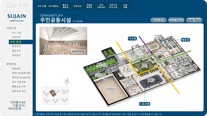 조경도 단지 전체 면적의 약 37퍼센트에 달하는 2만1,900제곱미터를 확보해서 쾌적함을 더했습니다. 주민 카페와 물놀이터가 조성되는 중앙광장을 중심으로 멀티코트, 어린이 놀이터 등이 배치되어 단지 내에서도 여유로운 일상을 즐길 수 있습니다. 최근 부동산 트렌드 조사 결과를 보면, 소비자들이 가장 선호하는 주택 특화 요소 1위가 다양한 커뮤니티가 갖춰진 주택이었다고 하는데, 이런 측면에서 이번 프로젝트는 시대의 요구를 정확히 반영한 상품이라고 볼 수 있습니다.