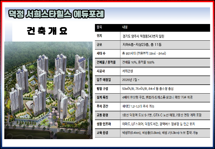 양주 덕정역 서희스타힐스 에듀포레뷰 미분양아파트 덕정동 서희건설 후분양 잔여세대 즉시입주