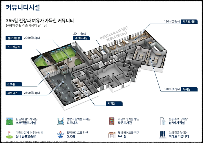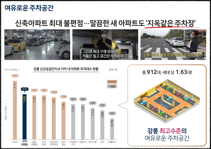 이 단지는 총 561세대 규모로 지하 2층에서 지상 16층까지 11개 동으로 구성되어 있습니다. 주택형은 전용 84제곱미터 A타입 326세대, 84제곱미터 B타입 177세대, 100제곱미터 58세대로 나뉩니다. 시행은 미래도건설과 공영이 함께하고, 시공은 35년간 다양한 시공 경험을 쌓아온 미래도건설이 담당합니다. 강릉에서는 모아미래도 브랜드를 처음 선보이는 것이라 더욱 공을 들였다는 평가입니다.