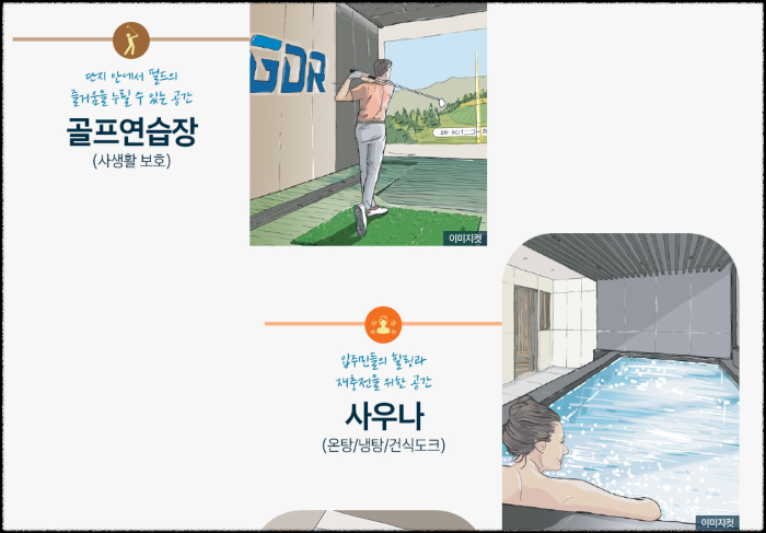 자이만의 특화 커뮤니티인 클럽 자이안도 주목할 부분입니다. GDR이 적용된 골프연습장, 피트니스 센터, 필라테스, GX룸, 사우나 등 다양한 운동시설과 교보문고 북 큐레이션이 적용된 작은 도서관, 독서실, 게스트하우스, 카페테리아 등이 들어섭니다. 라운지를 갖춘 티하우스와 특화 조경의 단지 공원도 조성될 예정입니다.