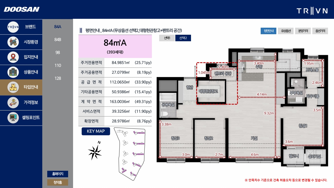 트리븐이라는 브랜드는 두산에너빌리티가 새롭게 선보이는 주거 브랜드입니다. TRI(나, 사회, 지구)와 VALUE, NEWNESS가 합쳐진 이름으로, 지속 가능한 집을 지향한다는 의미를 담고 있어요. 신규 브랜드라고 해서 걱정하실 필요는 없습니다. 오히려 신규 브랜드는 시장에서 인지도를 높이기 위해 초기 분양에서 가격 경쟁력을 갖추거나 특화 설계에 더 많은 공을 들이는 경향이 있거든요.
