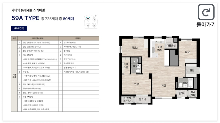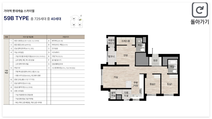 부산 가야역 롯데캐슬은 대형 건설사 롯데건설이 시공한 프리미엄 주거 단지입니다. 총 4개동, 725세대 규모로 구성되어 있으며, 전용면적 59㎡, 77㎡, 84㎡ 등 실수요자 중심의 중소형 평형으로 이루어져 있습니다. 세부적으로는 59㎡A형 80세대, 59㎡B형 40세대, 77㎡ 120세대, 84㎡A형 323세대, 84㎡B형 162세대로 구성되어 있어, 가족 구성원 수에 따라 선택의 폭이 넓습니다.